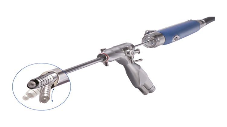 镜下动力磨钻用于切除软组织和骨头,其刀头多种多样,根据组织的类型和手术部位,选择不同的刀头通过椎间孔镜直视下柔和、平顺地切削骨与软组织,处理椎管狭窄、韧带肥厚占有得天独厚的优势。