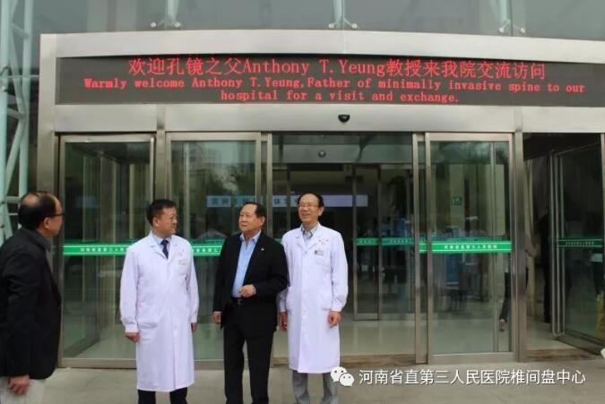 2018年10月16日,世界著名微创脊柱外科大师、世界微创脊柱协会前任主席、杨氏内窥镜脊柱系统发明人、世界级脊柱微创诊断治疗奠基人Anthony T.Yeung教授应邀来到河南省直第三人民医院参观访问,与我院椎间盘医生共同探讨脊柱微创。