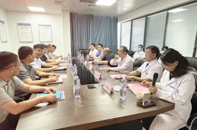 我院副院长袁启东、院长助理兼椎间盘中心首席专家周红刚、医务科科长刘长明、宣传部主任陈爱云、骨科主任沙宇、血管外科主任彭喜涛等代表医院对宝丰县人民医院一行的来访表示欢迎,并陪同参观交流。