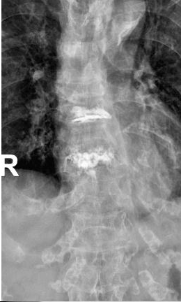X线或MRI可发现脊椎压缩性骨折或骨结构异常。